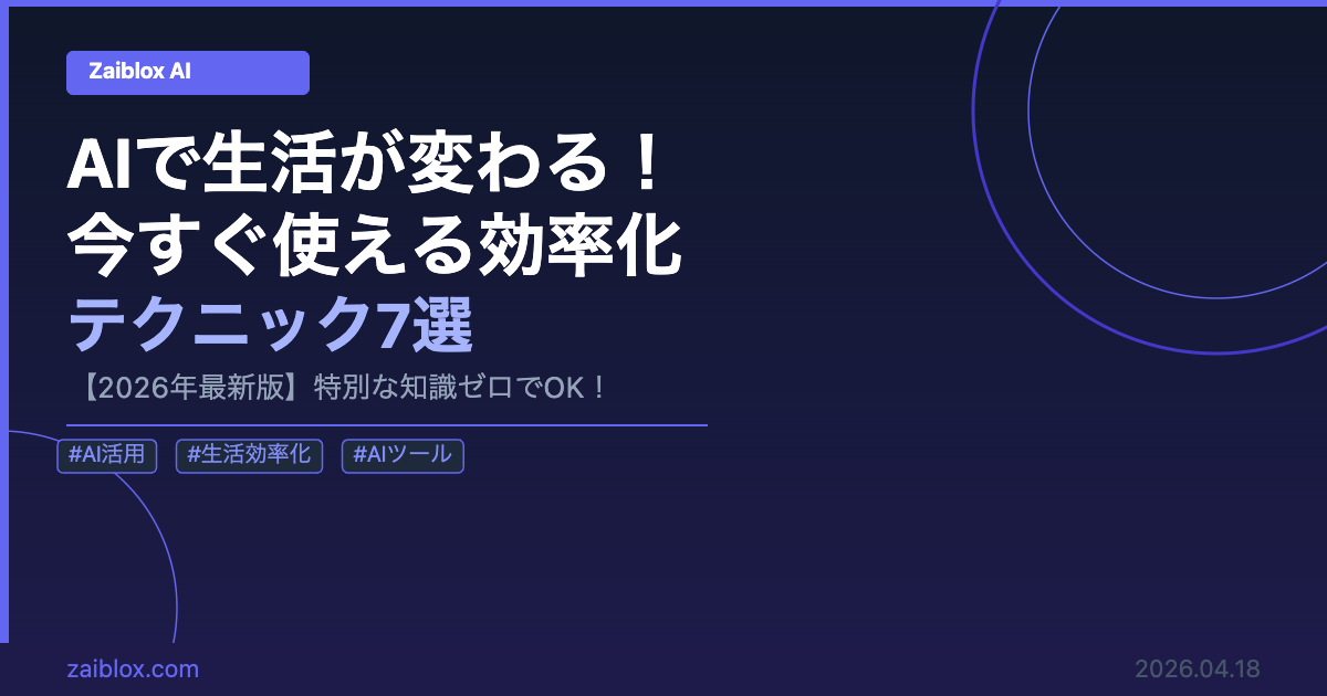 「AIって難しそう…」と思っていませんか?実は、AIはすでに私たちの日常のあちこちに溶け込んでいます。家事、仕事、買い物、健康管理——あらゆる場面でAIをうまく活用すれば、毎日の生活がぐっと楽になります。この記事では、特別な知識がなくても今すぐ実践できる、AIを使った生活効率化テクニックを7つご紹介します。