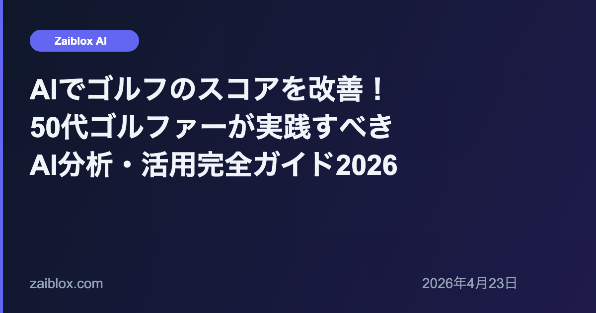 AIツールの基本的な使い方が不安な方は、ChatGPT使い方完全ガイド2026年版から始めてみましょう。スマートフォン1台で、あなたのゴルフが変わります。