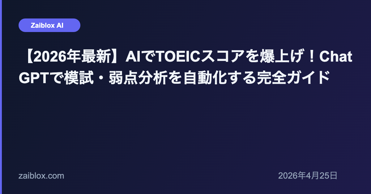 まずは今日、この記事のプロンプトをひとつコピーして、ChatGPTやClaudeに投げてみることから始めましょう。あなたのTOEIC攻略を、AIが全力でサポートします。